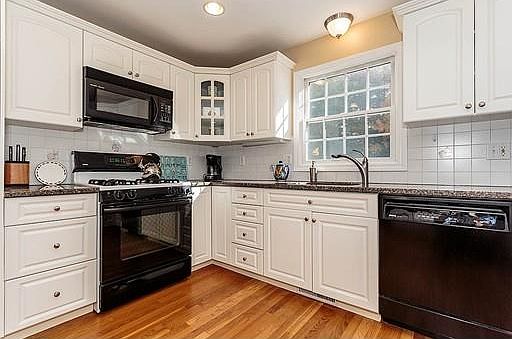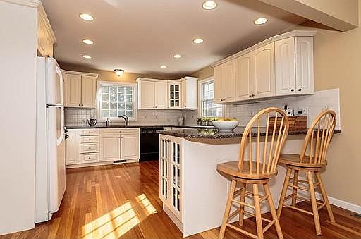 There is something for everyone to love in this elegantly updated cape set on a neighborhood cul de sac street. Gracious, light-filled sunroom entry welcomes you to the airy, open concept granite & hardwood kitchen/dining room with loads of space for cooking and entertaining. Spacious living room with bow window and gas fireplace, bedroom or home office, and large updated tile bath complete the first floor. Second level boasts two generously sized bedrooms (one with skylights) with extra large closets, plus full bath. Beautiful hardwood floors throughout. Need more space for guests or a home business? No problem! Just off the attached 2 car garage you will find a charming separate entrance legal in law suite with granite kitchen, bath, bedroom, and cathedral living space plus mahogany porch. Even more space for possible expansion above the garage. Back deck and brick patio overlook the lovely private wooded yard. Impeccably maintained, energy efficient and move-in ready.
