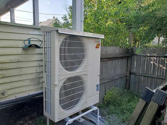 Attention investors, builders, contractors and handy people this home has New Roof, New Heat Pumps, Updated Electrical and added Insulation. At one time a 2 unit, check with town for reverting back or continue to renovate as single family. 3 to 4 bedrooms, 2.5 baths. Ready for final interior design and finish. A terrific location and a solid building within walking distance to downtown, schools and YMCA. Fenced in private space with storage building and tons of potential!