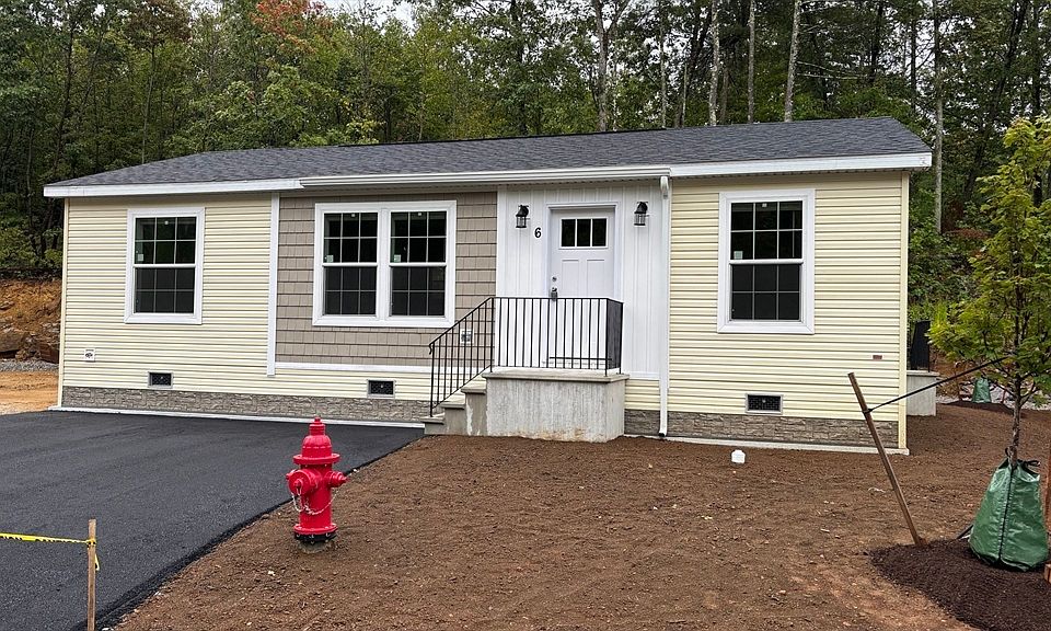 **QUICK CLOSE Opportunity in Blueberry Hill Estates!**If you're looking to downsize without compromising on quality and comfort, this is the perfect opportunity for you! Our thoughtfully designed homes offer the best of modern living, surrounded by picturesque conservation land. Highlighted features inside include a stainless steel farmhouse kitchen sink, stainless steel appliances, full tile backsplash in the kitchen, tray ceiling and entertainment center in the living room, & central A/C. Step outside to your own 10’x12’ brushed concrete patio, perfect relaxation amidst nature. With a 7-year limited warranty, this home offers peace of mind and quality living. Act fast, as this opportunity is sure to go quickly! Blueberry Hill Estates is a land leased community. One monthly fee will cover sewer & water charges, real estate taxes, rubbish & recycling, snow plowing, sanding, & maintenance of the roadways, all landscaping maintenance, cable TV, & high speed internet.