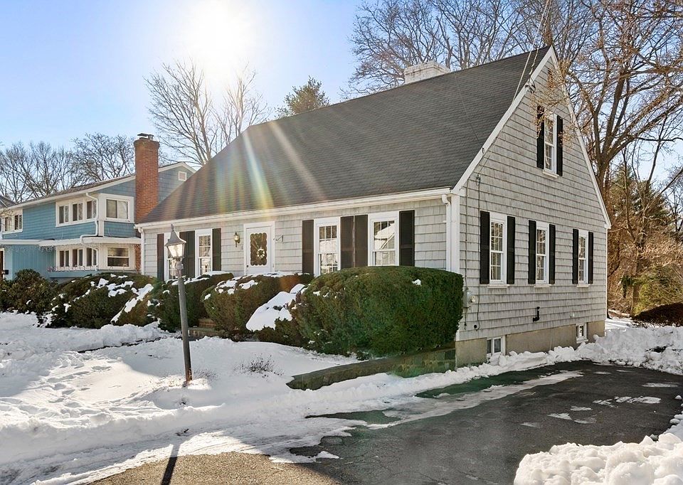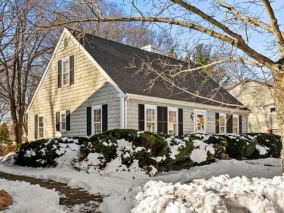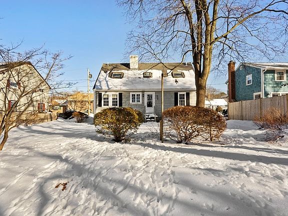 Charming two bedroom, one bath cape with loads of potential. Over 1,000 sq ft of living space on the first level and fireplace in the living room which opens to dining room. Classic, open staircase that leads to unfinished second floor. Upstairs has electric service as well as heat but walls and floors are unfinished for this large, open space. Washer and dryer are in the full basement with high ceilings- wonderful potential for being finished. Windows are replaced throughout the house, hardwood floors on first level, forced hot air heating system, roof appears to be older and electrical panel includes fuses. Lot is over 8600 sq ft and overlooks a wooded area. Village Street Dock, schools and playgrounds close by. Bring your imagination to this well maintained home for a modern transformation! Please see floor plans attached.