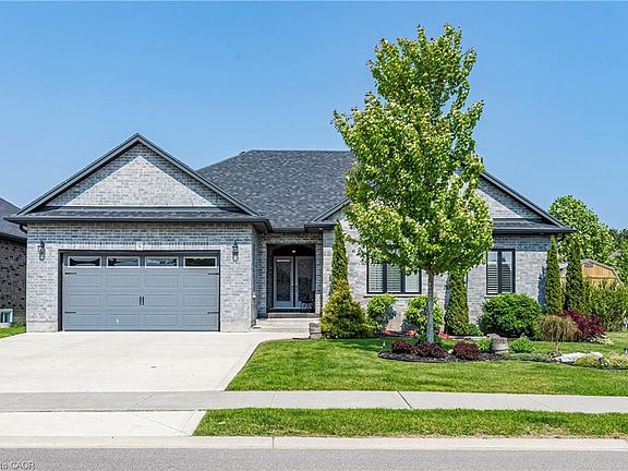 Immaculate and move-in ready, this exceptional family home is nestled in one of Port Dover’s most sought-after communities. Welcome to 6 Bluenose Drive conveniently located near premier golf courses, excellent restaurants, and the town’s renowned sandy shoreline. From the moment you arrive, the home’s impressive curb appeal stands out, featuring well-kept landscaping, a modern concrete driveway, and a charming covered entrance with double doors that lead inside. The interior is thoughtfully designed for hosting, showcasing a spacious kitchen any cook would appreciate complete with ample cabinetry, quartz countertops, a stylish tile backsplash, and a central island that flows into a generous living area featuring a striking floor-to-ceiling stone fireplace. The main floor also includes two guest bedrooms, a full four-piece bathroom, and a roomy primary suite offering a spa-inspired five-piece ensuite and a walk-in closet with plenty of storage. Access the fully finished lower level through the laundry/mudroom conveniently situated off the attached double garage. Downstairs, you’ll find an extensive layout that includes two more bedrooms, a three-piece bath, an exercise room, and a massive recreation room with its own fireplace perfect for entertaining or cozy nights in. Step outside to a large deck that overlooks a fully fenced backyard, ideal for outdoor gatherings or peaceful relaxation. This home checks all the right boxes—perfect for families or anyone seeking the ease of main floor living. Room sizes approximate.