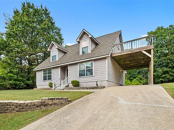 Enjoy the peaceful Bella Vista setting with this charming home surrounded by trees, just minutes from trails, lakes, and local conveniences. The main level offers a cozy living room with a detached electric fireplace that conveys, an open kitchen and dining area with a pantry and brand-new microwave, a laundry room, and the primary suite. Upstairs features two bedrooms, one with deck access, and a full bath. Step onto the deck to take in the wooded views, with a covered carport below for convenience. The roof was replaced within the last five years for added peace of mind. Perfect for outdoor enthusiasts, this home is just 1 minute from the Tweety Bird Bike Trailhead, 6 minutes from Lake Windsor, 11 minutes from Lake Avalon, and only 4 minutes from the future OZ Trails Bike Park with lift access. Grocery stores, restaurants, and the Bella Vista Recreation Center are close by, with quick access to I-49 for an easy commute.