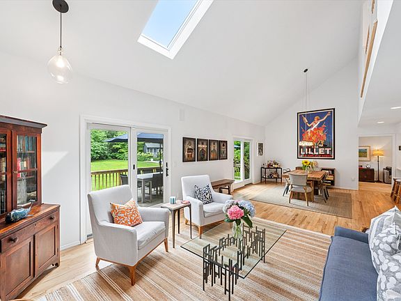 Rental Registration #: 24-1416 Discover your perfect East Hampton getaway in this charming home nestled on a private cul-de-sac. Set on 0.8 acres, this serene retreat is just a 10-minute walk to Main Street and the LIRR train station, offering both privacy and convenience.The classic salt-box-style home features a bright, open great room with a traditional wood-burning fireplaceperfect for cozy evenings. Sliding glass doors lead to a spacious deck with outdoor seating and a gas grill, overlooking a beautifully manicured lawn, lush gardens, and a heated 40x20 saltwater pool. An additional den provides the perfect spot for afternoon relaxation or movie nights on the 55" TV.The home offers three inviting bedrooms:Two upstairs bedrooms with queen beds and private en suite bathrooms.A ground-floor bedroom with a queen bed and a full bathroom conveniently located across the hallway.Located in the heart of East Hampton, you're just a 5-minute walk to renowned restaurants like Nick & Toni's, Serafina, and EH Grill, as well as the IGA grocery store. The pristine East Hampton beaches are less than 2 miles awayeasily accessible by bike for a quick seaside escape.