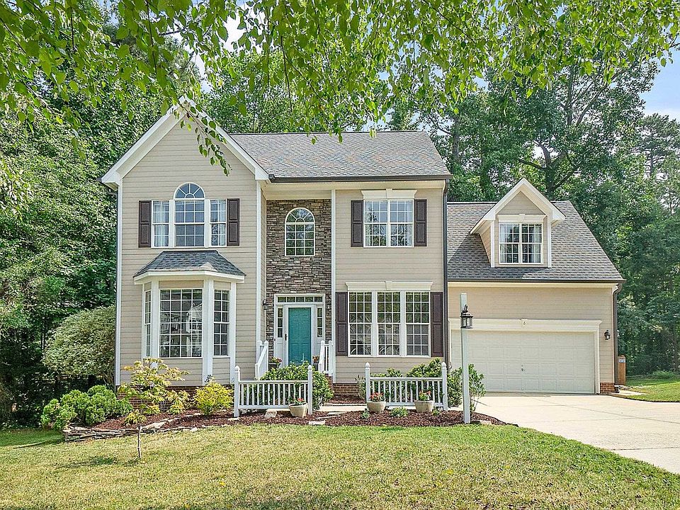 Great open floorplan with large windows that let in plenty of natural light! Kitchen boasts a large island perfect for entertaining, granite counters, stainless steel appliances, and plenty of storage! Hardwoods throughout the main level with new carpet upstairs! Beautiful primary suite with soaring ceilings! Spacious bonus room! Huge walk up attic with so much potential! Relax the night away on the screened in porch overlooking the private backyard! Community pool, lake, playground! Quick access to I-40 & RTP!
