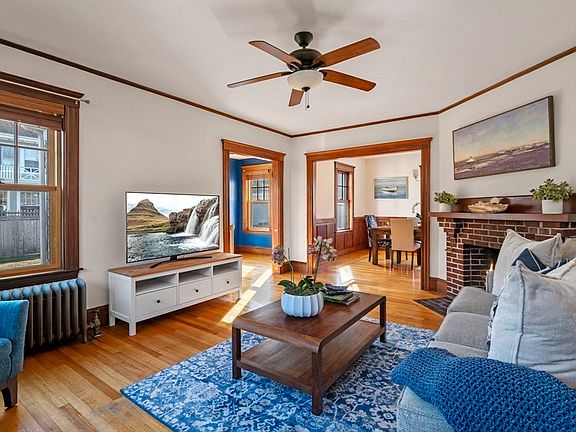 Situated on one of Marblehead's most desirable streets in the Clifton neighborhood, this charming 1920s home beautifully combines period details with modern conveniences. Original hardwood floors, meticulously restored woodwork, and timeless craftsmanship create a welcoming ambiance. The first floor boasts an open-concept granite and maple kitchen with a center island, a living room with a cozy fireplace and window seat, a sunroom, a dining room with wainscoting and a built-in china cabinet, and a full bathroom with a tiled shower. Upstairs, three spacious bedrooms with ample closets, a beautiful recently renovated full bath, and a bonus room/office with access to a private balcony await. The level, fenced backyard is perfect for relaxing or entertaining, complemented by a two-car garage, a large driveway, a basement, and a walk-up attic with incredible opportunity for expansion. Conveniently located near amazing parks and beaches, schools & more this home is a true treasure.