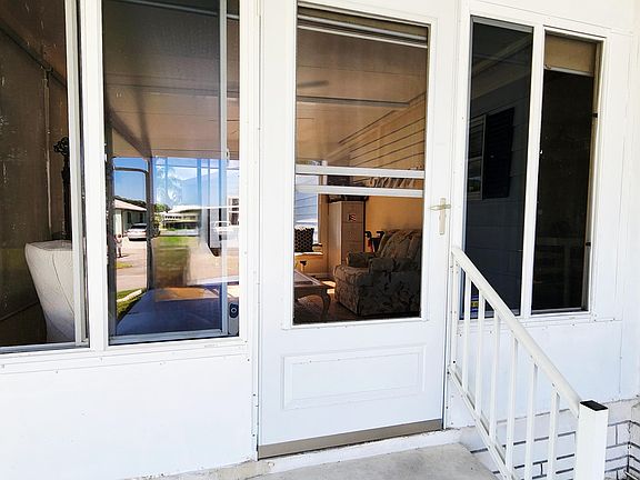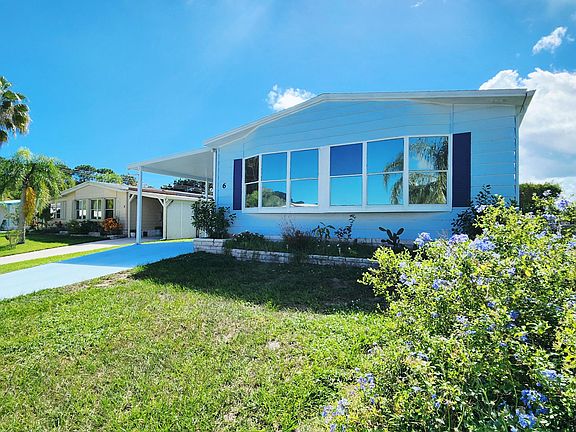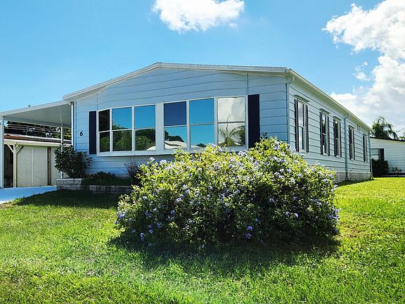 Must see, well maintained 2 bed/2 bath home. On a quiet cal-de-sac, w/ 2 security cameras outside & security system inside. Large walk in closet in Primary bedroom. Murphy bed in guest room. Spacious Florida room w/ updated window treatments. Indoor laundry room. Laminate floors w/ carpet in bedrooms & ceramic tile in Florida Rm. Kitchen cabinets recently painted & outlets updated. Golf Cart outlet added in carport. Large Shed. A/C 2024. Spanish Lakes, 55+ community w/ lot lease of 931.00 includes lawn care, trash removal, Heated Pools, Security, Cafe, Clubhouse w/activities, Private Golf Course (no fees to play), Bingo, Billiards, Bocce, Pickleball, Tennis, Shuffleboard, gym, Library, cards, Mahjong, Clubs & More!