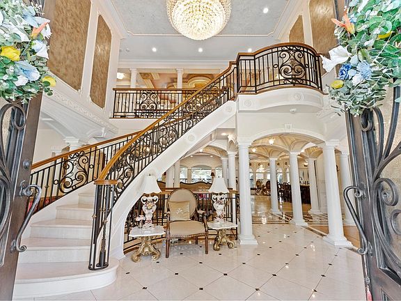 Discover 6 Burning Hollow—a stunning European-inspired custom built estate nestled on a private street in the prestigious Saddle River. This 10,000+sqft architectural masterpiece offers 6 spacious bedrooms, 7 full and 3 half baths situated on approximately 2 private acres. From the soaring grand foyer and sweeping staircase to the richly detailed living and dining spaces, every inch reflects timeless elegance. The gourmet kitchen features ornate cabinetry, a large island, and a sun-drenched breakfast nook overlooking the indoor pool. The true showstopper: a dramatic two-story indoor pool sanctuary with cascading waterfalls, private grotto and resort ambiance. Elevator access, exquisite domed ceilings, and lavish entertaining spaces complete this exceptional residence.