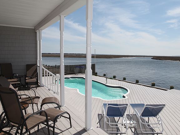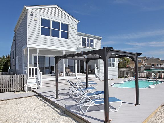 Enjoy spectacular bay and sunset views along with the best boating and fishing on LBI! Well-designed High Bar Harbor bayfront home with 60 feet of bay frontage, dock, and 35 x 60 foot riparian grant. Immaculate interior with flexible floor plan features 5 bedrooms, 4 full baths, huge family room, bright kitchen with granite tops and stainless steel appliances, tile and granite baths, very large bayfront master bedroom suite with two full baths, automated window treatments, skylights, 2 car garage, gas heat, central a/c, and more. Exterior features include bayfront heated in ground swimming pool with Procell decking, covered porch, outdoor shower, cedar impression siding, brick drive, and landscape irrigation. CONTACT listing broker, Benée Scola. benee@beneescola.com 609-494-0077