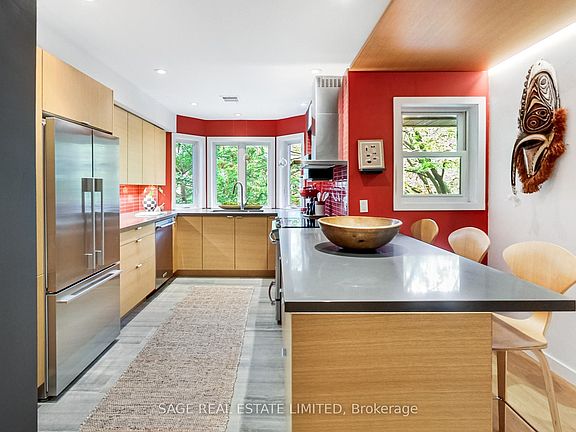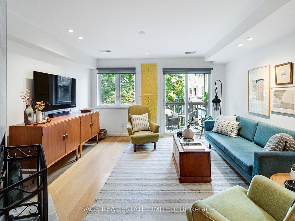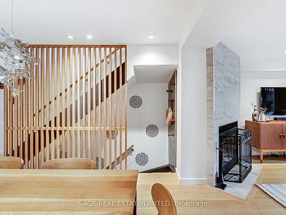 Tucked away in a quiet pocket between Trinity Bellwoods and King West, this bright and beautifully renovated home seamlessly blends sophisticated design with thoughtful functionality, making it perfect for those who want more space without leaving the energy of downtown behind. Fully reimagined in 2019 with a complete interior redesign and rebuild, the home offers the best of modern living: a sleek chef's kitchen featuring Caesarstone counters, custom rift-cut White Oak cabinetry, and a designer tile backsplash, along with a Limestone floor. Every detail was considered, from upgraded plumbing and electrical systems and fixtures to soundproofing for added privacy and beautiful White Oak floors throughout. Recent 2025 updates include remodelled upstairs bathrooms and a custom fireplace surround. The open-concept main floor is ideal for entertaining, spacious, light-filled, and flows seamlessly to a private balcony for morning coffee or evening cocktails. Upstairs, two large bedrooms provide flexibility for couples, small families, or down sizers. The primary suite features a walk-through closet and spa-like ensuite, while the second bedroom boasts a double closet, ensuite and its own balcony retreat. second-level laundry, ample storage, and a chic main-level powder room are all bonuses, along with owned parking and a private locker. The home strikes a balance between practical needs and elevated function and style. Just steps from Queen West's boutiques, King Street and Ossington's dining and nightlife and easy transit, it offers the rare combination of quiet comfort, thoughtful design, and vibrant city living, a stylish retreat with room to grow.