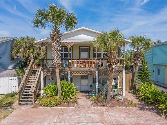 Summers are endless in a premium St. Augustine Beach east of A1A location. A splendid seaside opportunity just rolled in at this beachside duplex within 150' of the sand. Two levels of coastal bliss with 2 bedrooms, 1 bath with 1040 sq feet of living space each unit, sizeable kitchen, open living and dining areas. Premier coastal location close to all the action offering a primary or seasonal home and lease option on the other unit. Just refreshed with new interior paint! Shops, cafes, events and beach fun are a short hop from home. St. Augustine Beach Fishing Pier & Splash Park, farmers market, concerts and minutes to historic district! Salt air and morning sunrises await. Opportunity for a coastal primary or seasonal residence and income stream on the other unit long term. (Seller does not hold a transient/vacation rental permit) High and Dry lot, Not in a Flood Zone;