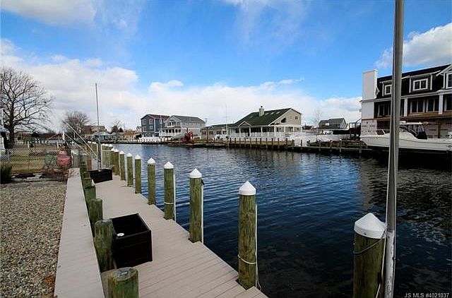 This waterfront ranch home has 3 bedrooms and 2 full baths! Located in Sands Point Community, this home is perfect for seasonal or year-round living. Sits on a cul-de-sac, this home has an open floor plan with vaulted ceilings in the large family room, newly updated eat-in kitchen with stainless steel appliances and a walk-in pantry. Master bedroom has a private bath w/stall shower. A formal living room, a full laundry room, as well as a bonus room (can be office/gym), also plenty of storage completes the wish list for your new home. Sliders to the backyard with newer 50 ft bulkhead + fully fenced-in yard. Bulkhead has composite decking and a sink with cleaning station + electric for the fisherman! Only minutes to the bay. No maintenance yard, newly paved front driveway, beds for vegetables/planting in summer. Newer roof, 2-zoned Natural Gas Heat, Washer/Dryer Included. Close to shopping, bay, beach and more! Be settled in before Memorial Day!
