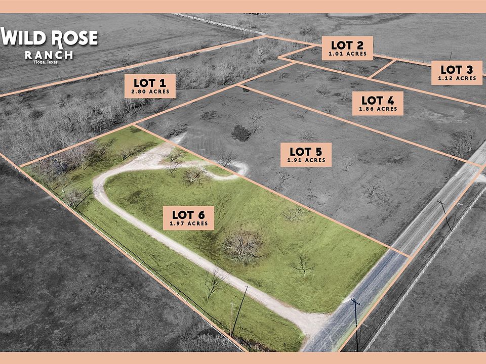 HUGE PRICE DROP!! Start Building Your Custom Dream Home or Upscale Barndo & Shop NOW on this 1.97 ACRE Lot in Wild Rose Ranch in Tioga, Tx! Lot Comes Fully Equipped with Water, Electric and Roads. NO City Taxes, NO MUD, NO PID and NO HOA. Lot is in Close Proximity to Dallas North Tollway Providing Easy Access to Prosper, Celina and Frisco and all the Shopping and Stores Including the Upcoming HEB and Costco. Choose to Either Bring Your Own Custom Home Builder, or On-Site Builder Wesley Farr Homes Can Assist You in the Building Process! BARNDOMINIUMS WELCOME! This 1.97 ACRE Tract of Land is Suited for an Amazing Custom Home with a LARGE Build Site and Over 190 Feet of Road Frontage. Horses, Chickens, Cows, Longhorn, Bulls, Llama, Buffalo, Sheep and Goats are Allowed! Accessory and Detached Buildings Allowed for All Your Toys, Including Mother In Law Suite. Located in Highly Acclaimed TIOGA ISD! Located in County, You Can Get Started on Building Your Dream Home Right Away Plus Save on Your Property Taxes! Current Tax Rate is ONLY 1.67 Percent!! Wild Rose Ranch is Tioga's Newest Exclusive Subdivision with ONLY SIX LOTS FOR SALE Ranging from 1 Acre to 2.80 Acres. Close to Lake Ray Roberts for All Your Boating and Lake Activity Needs! Contact Agent Stephen Reddy Directly with Any Questions & Available Lots List. Minimal Build and Deed Restrictions. No Mobile Homes