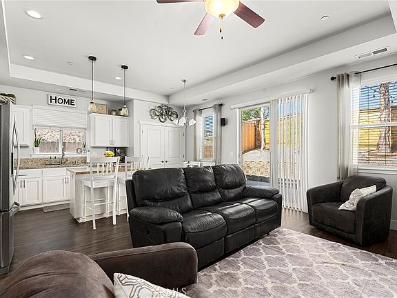 Welcome to 6 Camba Ct, a hidden gem tucked at the end of a quiet cul-de-sac in North Chico, perfectly positioned across the street from scenic bike trails and a peaceful creek. Built in 2017 by the highly regarded Josh Leach Construction, this 3-bedroom, 2-bathroom home spans 1,343 sq.ft and offers the ideal blend of thoughtful craftsmanship, energy efficiency, and a prime location near walking paths and local conveniences. As you step inside, a welcoming entryway sets the tone. Just off the entry, you'll find two generously sized guest bedrooms and a beautiful full bathroom featuring granite countertops, a shower/tub combo, and thoughtful storage. Continue down the hallway, and the home opens into a light and bright living room filled with natural light, offering an inviting space to gather, relax, or entertain. The heart of the home is the open-concept kitchen, where modern design meets everyday function. Outfitted with crisp shaker-style cabinetry, granite countertops, a center island with bar-top seating, and stainless steel appliances, this kitchen is as practical as it is beautiful. Just off the dining area, you'll find an oversized pantry cabinet, providing even more storage for all your kitchen essentials. A sliding glass door leads from the dining space to the backyard. Tucked at the rear of the home, the primary suite is a private retreat featuring high recessed ceilings, plush carpet, and peaceful natural light. The en-suite bathroom includes granite countertops with dual sinks, a walk-in shower, a private toilet closet, and a large walk-in closet conveniently located within the bathroom itself. Step outside and you'll find a massive concrete patio that spans the entire space, perfect for creating multiple entertaining zones. Whether you're hosting a barbecue, outdoor movie night (with the mounted TV), or just enjoying the fresh air, this yard is ready. Multiple electrical outlets around the house and low-maintenance landscaping, including palm trees, add functionality to the charm. Additional highlights include a whole-house fan, whole-house water filtration system, central HVAC, fire sprinkler system, OWNED solar, and an instant hot water system. Whether you're seeking style, convenience, or a move-in-ready home in a fantastic neighborhood, 6 Camba Ct is the one to see!