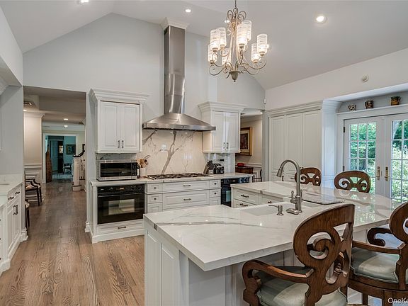 Inside, the heart of the home is the gourmet chef’s kitchen, thoughtfully designed with double ovens, premium appliances, and custom finishes. Entertain in style in the formal dining room, or gather around the wood-burning fireplace in the gracious living room. A richly paneled library offers a warm and inviting space for work or quiet retreat.
