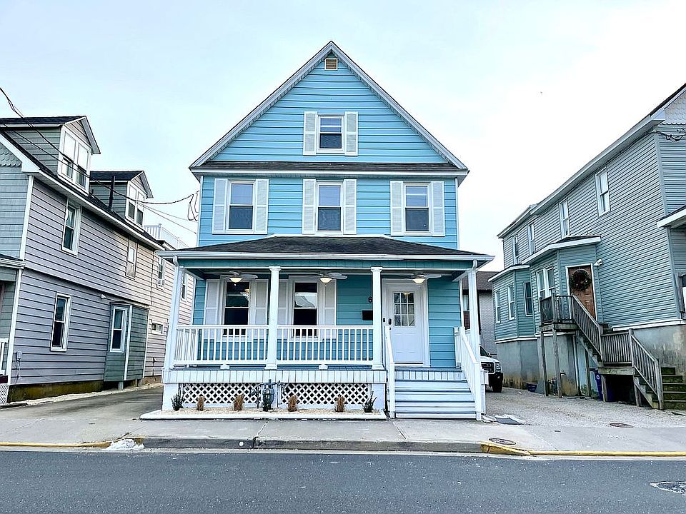 Family beach retreat in the perfect location! One block from beach and in the middle of Sea Bright's top-rated restaurants and shopping. Spacious 7BR/2.5BA Victorian home meticulously renovated, with beautifully restored original 1904 details including refinished oak floors and moulding, parlor doors, and impressive dining room with tin ceiling. Fully renovated including new eat-in kitchen with stone counters, 3 fully updated bathrooms, and new laundry area. Front and rear staircases lead to a second floor with 5 bedrooms, beautiful marble bath, and deck. Third level features large bedroom with vaulted ceilings and bonus area. Light and bright with lots of large windows on all levels. Private driveway with off-street parking for 2-3 cars. Walk onto the beach just seconds away. Unbeatable location, steps to beach access, fine dining, NYC ferry, shopping, and more. Just unpack and enjoy life at the shore!