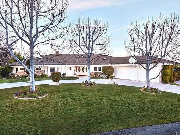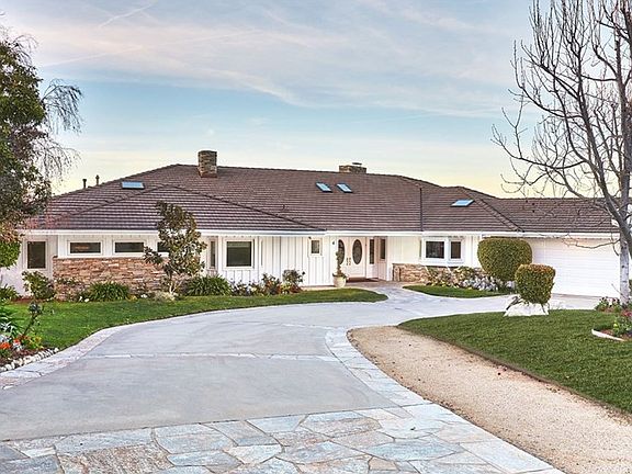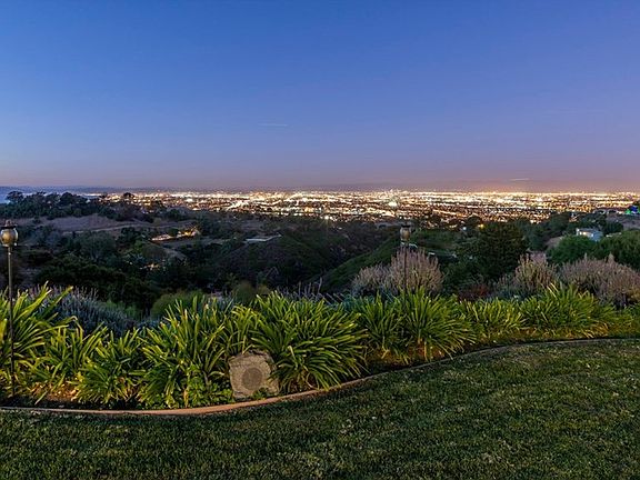 Located in the exclusive 24 hour guard gated community of Rolling Hills this custom ranch home has panoramic city light and mountain views from coastline to the LA Harbor. French doors in the family, living and formal dining rooms overlook the covered veranda, pool/spa and resort-like backyard. Large gourmet kitchen with granite countertops and island and top of the line appliances adjoins the huge family room with fireplace, soaring ceilings and lots of built-ins. The elegant living rm. has a fireplace, high ceilings and great views. Master suite with sitting area, fireplace, walk in closet and huge newly remodeled luxurious master bath with lots of marble, double Jacuzzi tub and shower with 7 sprayers and "rain shower head". 4 additional bdrms., 4 1/2 baths and an office in the loft. In addition there's a mirrored gym, sauna and large bonus rm that's perfect for a home theater. A real show place with crown moldings, hardwood floors and raised paneled walls. Orchard with various fruit trees and room for horses.