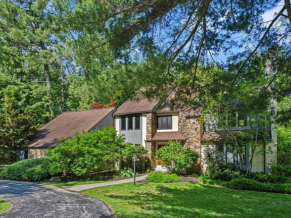 Constructed in 1990, this contemporary residence provides the perfect blend of open plan living, yet also provides distinct & separate living spaces for more formal needs. Situated on a 1.5+ acre parcel, the house has tremendous privacy with a meandering brook far in the rear yard. There is a circular driveway and a side driveway that accesses the 2-car garage. The house even has a smaller 3rd bay for additional storage. Approach the double door entry through a series of mature shrubs. An entry foyer with hardwood floors provides ample space to greet your guests. There are three distinct storage closets within the entry. The ½ bath is located just off the foyer. The living room occupies the western section of the first floor with windows on three sides and a gas-burning fireplace, also with wood floors. The dining room is just to the left of the entry foyer with a bank of windows overlooking the front yard. There is a butler’s pantry that connects the dining room to the kitchen with an entire wall of cabinetry. Across the entire rear of the home is one wide open living space. There are windows on three sides of the family room, two skylights in the vaulted ceiling, direct access to a screened porch off the side of the house & a gas fireplace. The breakfast area has a sliding door to the oversized & elevated deck that spans the entire length of the rear of the home. There is a massive island that can accommodate 4 stools with an abundance of storage. Another bank of cabinets with glass doors and storage cabinets below take up a portion of one wall. Another section has a workspace with a desk and open shelving for cookbooks. Along the outside wall, there is a 48” SubZero side by side fridge/freezer, a full bank of lower cabinets and the sink with a picture window overlooking the rear deck. The final wall has the most amazing 48” Wolf commercial grade range with so many functions! Just off of the kitchen is the mudroom that has direct access to the garage and the side yard. From here, one has access to a walk-in pantry & the laundry room with a 2nd refrigerator & freezer along with an abundance of storage cabinets. One also has access to the 2nd set of stairs. As one ascends the primary staircase from the foyer, there is a large loft area overlooking the family room below with a wall of built-in bookcases. The primary suite occupies the entire space over the living room & foyer. The bedroom has two standard closets on the front wall. As one enters the en-suite bathroom area, you’ll find a door that provides stairs to the full attic. There is a separate sink area with 2 sinks & access to the large walk-in closet. There is jetted tub, shower and toilet in the remainder of the bathroom. The 2nd bedroom on this floor has its own en-suite bathroom, a walk-in closet that then leads to a walk-in cedar closet. The two remaining bedrooms on this floor overlook the rear and side yards and share a 3rd full bathroom in the hall. The rear staircase comes up where these 2 bedrooms are located. The majority of the basement has been fully finished. There is a large family room with a sliding door to the pool area. Across the front of the house, there is a spacious workshop area, a large storage closet and even a darkroom (remember when photographs had to be processed from negatives?) that has an abundance of built-in cabinetry and even a sink. The 5th bedroom has its own kitchenette, a bank of bookcases, a large closet and access to the 4th full bathroom. This has been an exceptional space for a live-in caretaker in the past and provides a wonderful, private space for an au-pair, parents or other family members that may need their own private suite. Now, let’s talk about the heated in-ground Sylvan pool & hot tub. Tucked right up against the house, there is tremendous privacy with evergreens and fencing surrounding the pool. There is even an outdoor shower! This means that the majority of the remainder of the yard remains wide open.