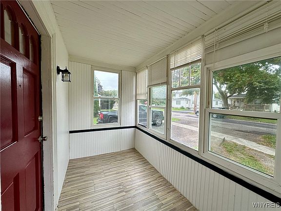 Welcome to this charming, updated, 4-bedroom, 2-bathroom home in the Village of Perry! Offering the perfect blend of modern improvements and classic charm, this move-in ready gem features a spacious deck overlooking a deep backyard, ideal for outdoor gatherings, and an enclosed front porch for added curb appeal and utility. Enjoy the convenience of one-floor living with a first-floor bedroom, full bath, and laundry. The kitchen opens to a dedicated dining area and living room, making it great for entertaining. Many recent updates include fresh paint, new flooring, and vinyl windows throughout the home, a beautifully refinished staircase with a custom metal railing that adds both safety and style. Upstairs, you'll find three additional bedrooms and a fully renovated bathroom, plus a walk-up attic with a ductless heat/AC unit—perfect for extra living or storage space. Complete list of updates & repairs available. New furnace and HWT 2021. All appliances convey with the sale. With off-street parking and a detached garage and shed for additional storage, this home has everything you need.