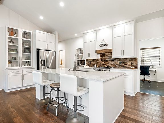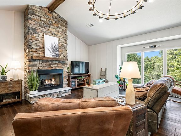 Picture perfect home near lake Loch Lomond.! Unique details like board and batten walls, pebble stone tiles, and wood flooring (no carpet). Upgrades like a stone fireplace, pot filler, gas cooking and fully fenced yard! Extra storage closets and cabinetry in entry and utility. Great walk in pantry! Enjoy your screened deck for 3 seasons, plus another deck off the primary suite. Oversized garage has plenty of storage or hobby space. Price includes washer, dryer and refrigerator. Don't miss this lovely home on one of the nicest streets in Bella Vista!