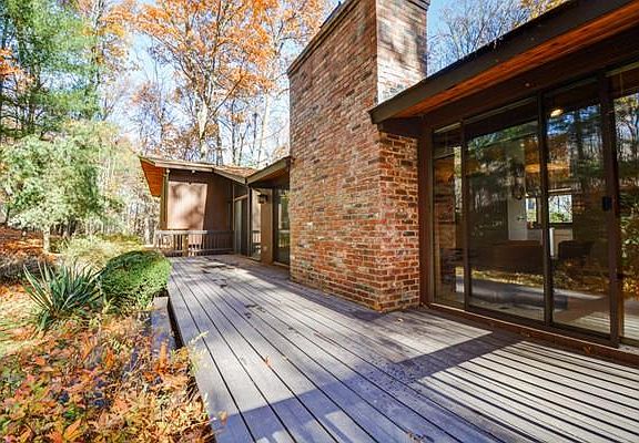 Expansive lines in this custom built multi level contemporary Deck home on a wooded site and abuts 13 acres of conservation land for added privacy~~~A blending of natural teak, oak and mahogany wood with walls of glass highlight this home~~~You will appreciate the open and airy floor plan as you enter the front foyer~~~Cathedral all natural wood beamed ceilings~~~Large and remodeled kitchen with center island...granite counter tops...breakfast area....gas cook top and stainless appliances ~~~Living room with built ins...fireplace and glass doors to the over sized deck~~~Formal dining room~~~Great room with a cathedral beamed ceiling and a stone fireplace~~~Large master suite with three bedrooms and an office area on the lower level~~~Finished basement offers a game room and wine cellar~~~Live among the trees in this private setting yet close to all highways....schools....train station and shopping...