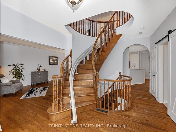 **OPEN HOUSE, SUNDAY OCT 5TH 2-4PM** Welcome to 6 Cinnabar Way located in the neighborhood of Granite Ridge, Stittsville. This updated 4-bedroom, 4-bath home family home with no rear neighbors is conveniently located within walking distance of several schools, the Cardel Rec Center, as well as many other amenities. On the bright main level you will enter to a large inviting foyer leading to a hardwood circular staircase, a separate living-dining room, a huge, recently updated open kitchen with eat in area, quartz counters, and walk-in pantry, as well as a large family room with gas fireplace, all overlooking the private, treed yard with above ground pool. There is hardwood and ceramic flooring throughout the main level, as well as a large mudroom with laundry area. The second floor, with hardwood and laminate flooring, has 4 bedrooms that are all a great size, with large windows letting in ample natural light, 4 pc main bathroom. The oversized primary bedroom has a separate sitting area, an updated 3-pc ensuite and walk-in closest. The lower level is fully finished with a huge rec room, a 3-pc bathroom, and two other rooms. Off the eating area, you will find a large deck with pergola, overlooking the private fully fenced yard with above ground pool. Recent upgrades: 2024: Full kitchen reno; 2023: Ensuite bathroom reno, pool heater, pool liner, pool filter; 2022: Garage door, Pergola. New pantry, Whole house painted, Laminate flooring in bedrooms; 2021 Roof, Deck, Patio door