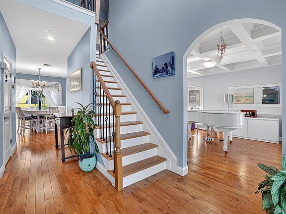 This stunning five-bedroom, four-bath Colonial offers a refined living space with an ideal blend of luxury, comfort, and functionality. the White Plains Step inside the dramatic two-story entry hall, where cathedral ceilings and modern wrought-iron spindles set a sophisticated tone. The modern eat-in kitchen features custom wood cabinetry, premium quartz countertops, a center island, stainless steel appliances, and sliders leading to a scenic backyard — the perfect setting for everyday living or entertaining. A large walk-in pantry offers exceptional storage.
