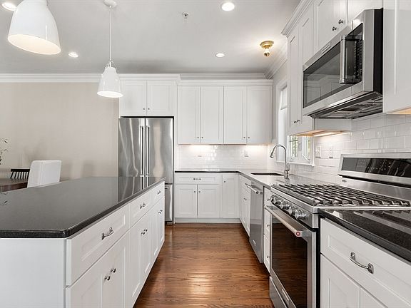 This stunning contemporary townhouse in the sought after Clarks Hill Village community offers a sun drenched open-concept layout creating an inviting flow for everyday living & entertaining. The center island chef’s kitchen comes well-appointed w/gas cooktop, stone counters, stainless appliances & generous dining area flowing seamlessly into the spacious family room w/cozy gas fireplace where family & friends can comfortably gather. Sliders open to a composite deck offering views of the private & tranquil backyard. Unwind in the dreamy primary bedroom suite w/custom walk-in closet, indulgent spa bath & versatile 3rd floor bonus space. 2 additional bedrooms & full bath complete the 2nd level. A finished lower level offers versatile living spaces to meet evolving needs. Enjoy this convenient location near shopping, restaurants, commuter routes, public transportation & vibrant downtown Framingham!