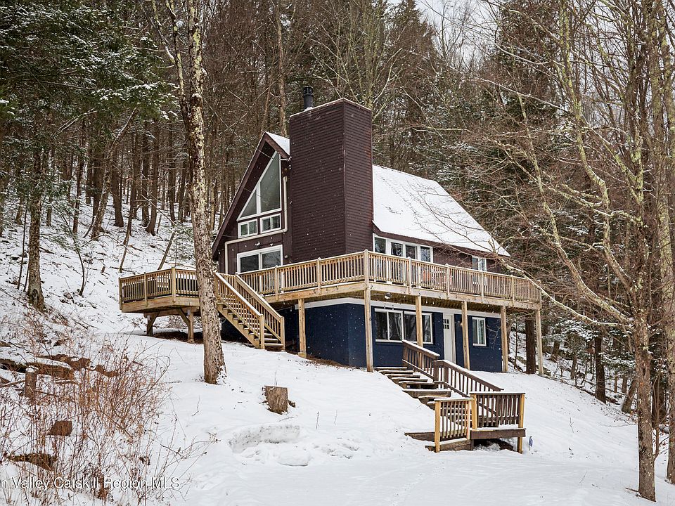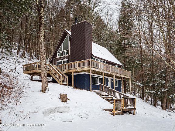 Just a stone's throw from the slopes at Hunter Mountain in the area colloquially called The Colonels Chair, this fully renovated 4 bedroom/3 bath home offers a year-round escape with majestic mountain and lake views. Large picture windows and sliding glass doors flood the interior with natural light and open to a wraparound deck framed by evergreens and spectacular seasonal foliage perfect for morning coffee or apres-ski cocktails. A circular driveway ensures easy in-and-out access, making this property as functional as it is beautiful. The home is also being offered fully furnished and turn-key, making it move-in ready from day one.