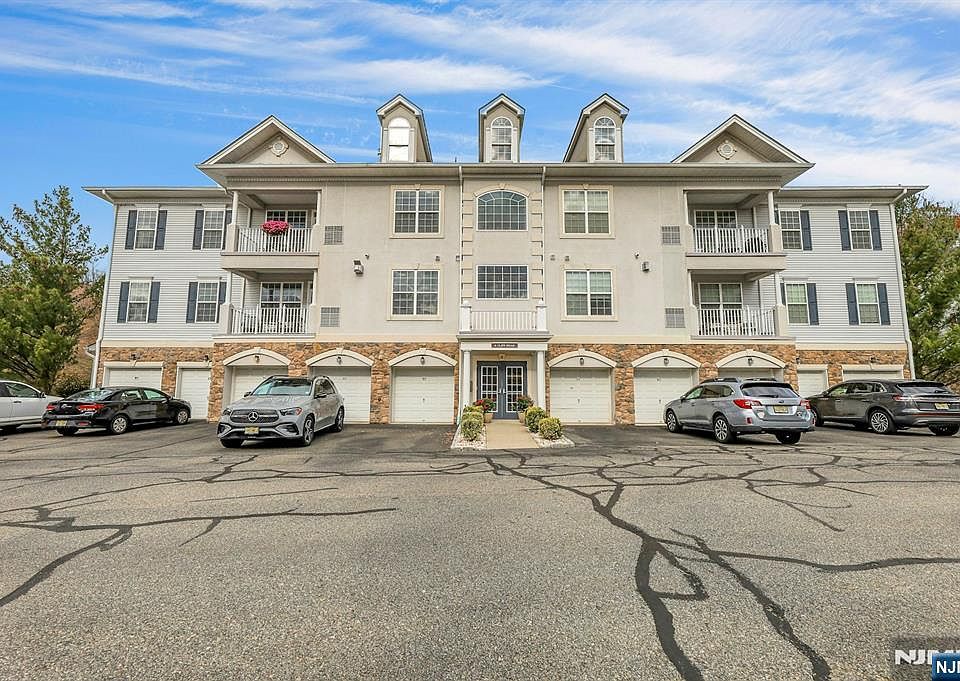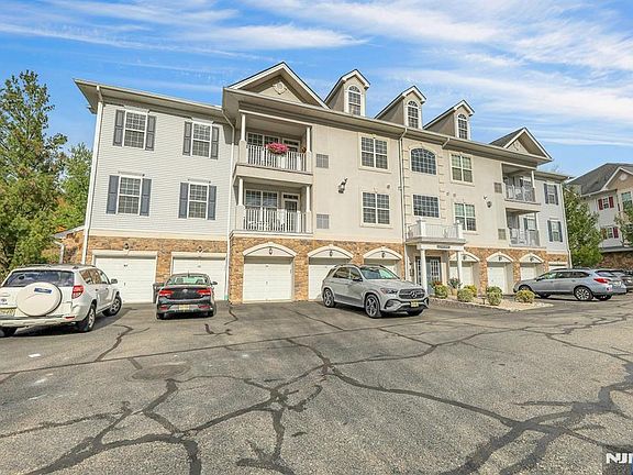 Welcome to 4 Seasons at Great Notch, a vibrant 55+ gated community! "Magnolia" 2-bedroom, 2 bath unit located on the 2nd floor in an elevatored building with a fabulous view of Rifle Camp Park off the balcony! This well-kept home has approx 1,750 sq ft of living space, a built-in private 1-car garage with storage room and parking space! Living/Dining room combo with gas fireplace and door leading to a spacious balcony, gourmet kitchen with double oven, gas range, dishwasher, microwave & refrigerator. Granite counter tops, breakfast nook, spacious den, laundry room, 2 bedrooms & 2 tiled baths (Primary King-size bedroom has a walk-in closet, full bath with double sink, shower stall, and jetted soaking tub. Hardwood flooring in the living area, wall-to-wall carpet in bedrooms. Pet-friendly, maximum of 2 pets, no breed restrictions. Gas forced air heat, gas water heater, and central AC. Maintenance fee of $529 includes amenities such as: clubhouse with gym, indoor & outdoor pool, card room, ballroom, billiards, bocce, tennis & pickleball courts, putting green, and more! Conveniently located near major roads.
