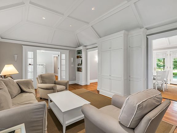 Wonderful Custom Ranch with Golf Course View! Many Charming features including coffered tray ceilings in the Great room, Dining room and Office! Custom kitchen features 6 burner Viking Stove, Sub zero Refrigerator, Asko Dishwasher and double sinks. Hardwood floors throughout, lots of custom built in cabinetry, neutrally decorated, large bluestone patio plus attached 2 car garage. Top Notch schools, close to Ocean Beaches and Fast ferry to NYC. Great Home for year round living, or as a summer/weekend place.
