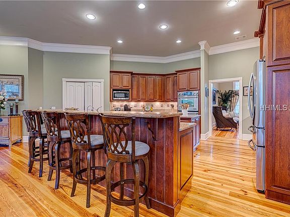 See 3D VT link. Fabulous 5 BR/5 BA family home with totally private pool/spa, fenced-in backyard, tranquil lagoon and golf views with no cart path. Ideal work from home environment. Interior features ceiling to floor windows, heart of pine flooring & travertine, intricate crown molding, huge open floor plan, gourmet eat-in chef's kitchen, multiple fireplaces, granite throughout, double ovens, wine cooler, large pantry, SS appliances, 5 burner gas range, 3-car garage, great guest parking, and the list goes on. Don't miss this one!