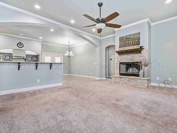 Welcome to this beautiful home in Canyon East. The entry leads into a bright, open living area that connects seamlessly to the kitchen and dining space, creating an inviting setting for everyday life and easy entertaining. Just off the main living area, a dedicated office provides the perfect spot for working from home or managing household tasks. The isolated master suite offers a quiet retreat with a spacious walk-in closet and a comfortable private bathroom. Two guest bedrooms sit on the opposite side of the home, each with easy access to the centrally located second bathroom. Outside, an extended driveway provides ample parking and leads to the convenient side-entry garage. The oversized back patiowith automatic shadesadds even more usable space for relaxing or hosting guests. Thoughtfully arranged and full of practical features, this home delivers comfort, function, and a welcoming feel throughout.
