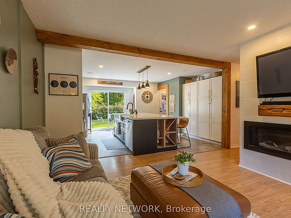Welcome to this beautifully updated bungalow, perfectly situated in the desirable Cole Farm neighbourhood of Port Dalhousie. This move-in-ready home combines modern finishes with timeless comfort, offering a lifestyle that's as stylish as it is practical. The main floor boasts a bright, open-concept layout, featuring a stunning kitchen with a large island, seamlessly flowing into the living room with a cozy fireplace ideal for both entertaining and family living. Three spacious bedrooms and a luxurious full bathroom with a separate shower and soaker tub complete this level.The fully finished basement expands your living space with a versatile room that can serve as a potential bedroom, office, or guest suite, alongside a second full bathroom. The lower level also offers a wood-burning fireplace, a wet bar area, and plenty of space for family gatherings or entertaining. Step outside to a private backyard retreat with new stamped concrete, perfect for outdoor dining and relaxation, while still leaving ample grass for children or pets to play.This home truly has it all modern updates, functional living spaces, and an unbeatable location in one of Port Dalhousie's most sought-after communities. Book your private showing today and see why this home is the perfect fit for your family.