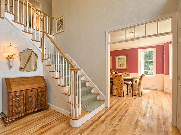 Beautiful and impeccably maintained home on 2.75 acres of manicured grounds and gardens located in a desirable and most convenient area of town. REFRESHED expansive kitchen with custom maple cabinetry w/ adjacent eat-in dining. UPDATED 1/2 bath - all NEW! Open floor plan with transom entryways extend to the spacious surround-sound family room, formal dining, living and sky-lit vaulted tiled sunroom. Kitchen and sunroom patio doors open to oversized deck and level backyard ideal for outdoor enjoyment. Two-story entry foyer with grand staircase points to REFRESHED master bedroom & new tiled shower; three generous bedrooms w/ additional full bath & laundry room. ALL NEW Harvey Windows & Patio Doors, exterior freshly painted, gleaming hardwood floors, ceiling fans and recessed lighting throughout. Minutes to Rt. 3/495 and every convenience you desire. Impressive curb appeal upon arrival that continues to delight from the outside in!
