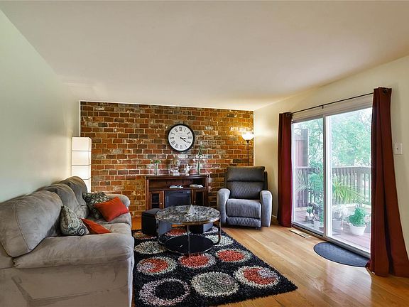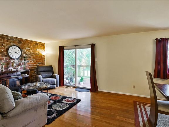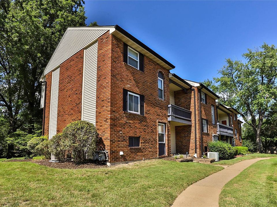 Fall in love with your new home in the heart of Chesterfield. Awesome townhouse with loads of space including plenty of outdoor space for entertaining.  Walk into large, open space living-dining space with beautiful hardwood floors and exposed brick walls. Living room opens to a large deck with lovely views of expansive green space. Kitchen is bright with natural light. Has tile flooring. Upstairs, find primary bedroom with double closets and private full bath, and two additional bedrooms and a second bath. Walkout finished lower level offers a large family room with sliding door to a lovely stamped concrete patio. Additional room with bookcase on exposed brick wall could be used as a home office or another bedroom. Includes one car garage and one assigned parking space, community pool. Easy access to highway 40/64 , restaurants, shopping and schools. If you are looking for a beautiful, cozy, peaceful home, this condo townhouse is worth a look and cannot be passed along. Location: Interior Unit