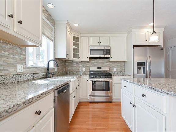 Come see this stunning, sun-drenched home with an open floor plan and gleaming wood floors that welcome you into a space designed for comfort and connection. The granite kitchen with stainless steel appliances flows effortlessly for everyday living and entertaining. Unwind in the spacious main bedroom retreat with a spa-like bath, featuring a whirlpool tub, separate shower, and walk-in closet. The finished basement offers a versatile 4th bedroom/office, expansive media/playroom, and ample storage. Step outside to your private oasis with a huge low-maintenance deck, patio, large yard, playground set, and a cozy front porch perfect for slow mornings or sunset chats. With large rooms,California closets, 2-car garage, and solar keeping monthly costs low, this home is both efficient and inviting. Nestled in a vibrant and picturesque neighborhood just minutes from major highways, town recreation, and local amenities—life here is easy, spacious, and full of warmth.