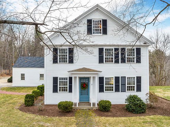 Public Open House Sunday February 26th, Noon to 2PM. Charming village colonial on over one acre of land, beautifully landscaped and maintained offers the best of village living. Present owner installed a new kitchen about ten years ago with Meile and Sub Zero appliances, ample cabinets, granite counter tops, wood floor and so much more. The freshly painted dining room has a fireplace, wainscoting and access to four season sunroom for enjoying privacy and a lovely outdoor setting. The wonderful fireplaced living room is nicely proportioned with corner posts and wood floor. Off the front hall is a half bath tucked away with access to a family room with Count Rumford fireplace and built in wall with shelves and cabinets and door to side yard. There is a lovely four season sunroom off the dining room for enjoying privacy and the beautiful outdoor setting. The stairway leads to three bedrooms and a walk-up attic. The primary bedroom is light and bright with a newer bath and large walk-in closet. There are two other bedrooms and an updated full bath. At the top of the stairs is a great area that would make good office space. Come see this beauty for yourself