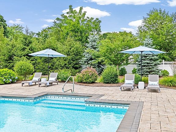 Beautiful 4-bedroom, 3-bathroom colonial home nestled at the end of a quiet cul-de-sac. The updated first level of this sun drenched home features multiple living areas, a custom cabinetry kitchen equipped with gas cooking, marble center island, generous dining room & mud area. In the upper level, you will find a large landing leading to 4 bedrooms, laundry as well as a primary bedroom with a walk-in closet, an en-suite with air jetted sitting tub & heated floors. The finished basement serves as a bonus room with separate workout room, as well as custom storage closets. Step outside to a meticulously manicured retreat, with an inground heated pool, pool house set on an expansive yard with irrigation. Home shows like new with newer windows, roof, Harvey siding & other big ticket items. Location cannot be beat, close to highway, restaurants & shopping.