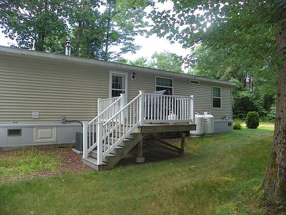 This beautiful home is located in a 55+ park and packed with features to make living comfortable! Start with the paved driveway and attached two car garage with plenty of work/storage space and auto opener; the convenience of walking into your house from a dry garage says it all! Utility room with washer, dryer, electrical panel, and furnace. Spacious kitchen with island, access to deck, and open to living room, both with cathedral ceilings. At one end is the master bedroom and master bath, with two bedrooms and bath at the other end. Convenient location.