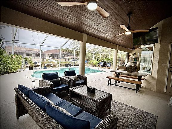 Screened poolScreened lanaiCovered lanaiFireplace with shiplapSaltwater canal frontageFully renovated kitchenWater and electric