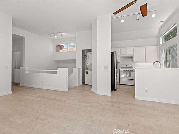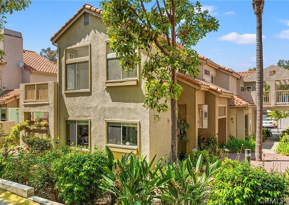 Discover this outstanding 2-bedroom, 2-bathroom upper-level carriage unit in the highly desirable Palm Court community of Laguna Niguel. This light-filled residence features an open and spacious floor plan with vaulted ceilings, a cozy fireplace, central air conditioning, and an indoor washer and dryer. The home is designed for comfort and functionality, with elegant window shades and what appears to be new hardwood flooring. One of the standout features of this home is its beautiful and relaxing tree-lined view, offering a serene and private setting. Step outside onto the private deck, which extends from the living area and provides a peaceful retreat with no neighbors behind you—a rare and sought-after feature. The primary suite offers a double-door entry, vaulted ceilings, spacious closets with built-in organizers, and an en-suite bath. The kitchen is well-appointed with a 4-burner electric range, stainless steel refrigerator, stainless steel sink, and dishwasher. This home also includes an attached single-car garage with direct access, plus a driveway for additional parking. Residents of Palm Court enjoy resort-style amenities, including lighted tennis courts, two community pools, two hot tubs/spas, and access to scenic walking trails. Conveniently located just minutes from Marina Hills Shopping Center, which offers dining, grocery stores, and retail shops. Enjoy proximity to world-class resorts like the Waldorf Astoria and Ritz-Carlton, as well as the renowned Salt Creek Beach and its famous surf breaks. The Dana Point Harbor and Lantern District are also nearby, offering exceptional shopping, dining, and entertainment.