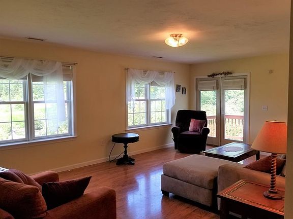 NEW ENGLAND COMMONS ADULT 55+ Community! This half duplex sits on a picturesque lot overlooking a turtle filled pond and walking trail. Single level living, fully appliance kitchen with tile floor, stone counter tops, laundry closet and interior access to the attached garage. The large living room has wood floors, a view of the pond and exterior access through French doors. Master Bedroom offers a walk in closet and half bath. If additional space is needed this house has a clean full unfinished basement. Located minutes from 395 and route 12.