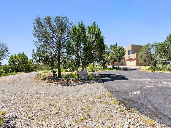 Bright and happy two-story custom home in the East Mountains has so much to offer! Located at the end of a cul-de-sac, the property's exterior features include a private gated entry, a concrete driveway, a deck with breathtaking views of the mountains and meadows. Interior features include a gas log fireplace, exposed beam vigas, tile flooring and countertops. The windows are situated for stunning panorama and let in tons of natural light. The three bedrooms are located on the second level. The primary bedroom features a private balcony. The primary bath has a large garden tub and separate shower. The HOA maintains the roads and does snow removal. Homeowners and their guests have exclusive access to hiking trails and open space areas.