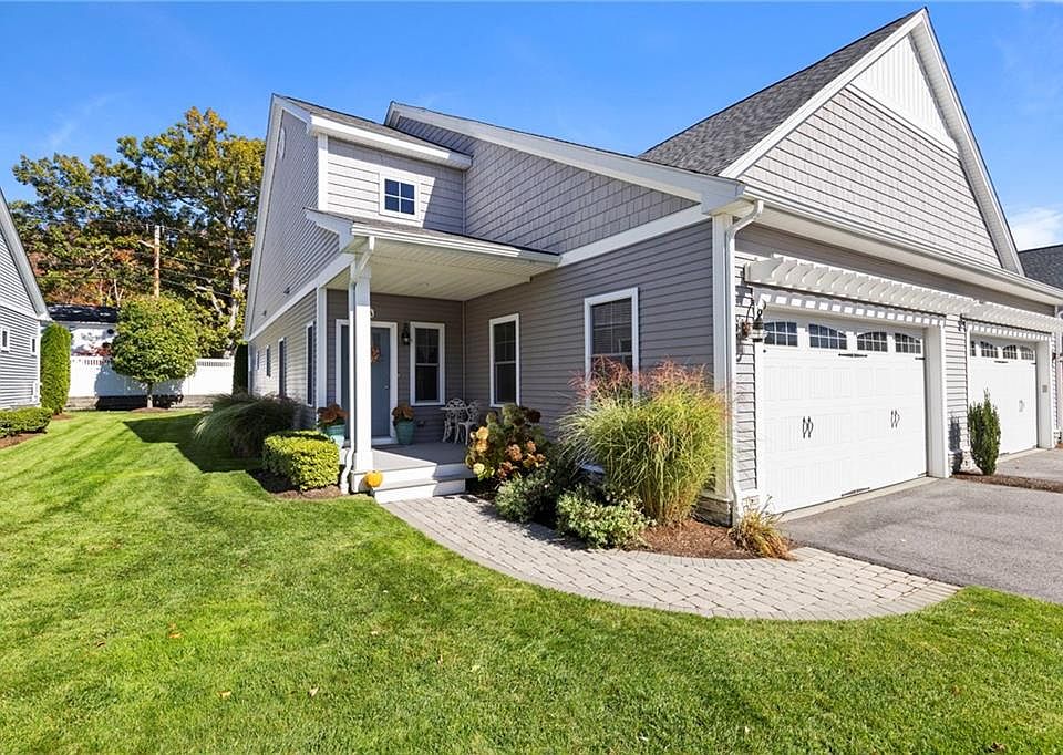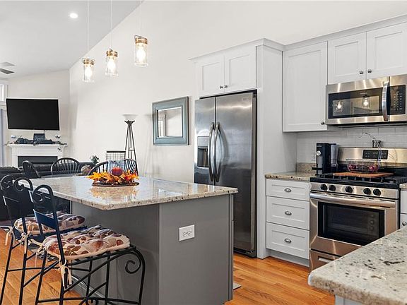 The Residences at Stillwater Cove offer serene, picturesque living in a highly desirable waterfront community. This duplex-style condo combines single-level convenience with modern luxury, featuring 2 bedrooms and 2 full baths, gas heat and central AC. The open floor plan showcases cathedral ceilings and LED lighting throughout, creating a bright and inviting atmosphere—ideal for both relaxing and entertaining. The kitchen boasts a large island with seating, granite countertops, and stainless steel appliances. Adjacent to the dining area, the spacious living room includes a zero-clearance gas fireplace with blower, providing warmth and ambiance through the cooler months. The ensuite primary bedroom features a coffered ceiling and a walk-in closet. Oak hardwood flooring runs throughout, complemented by upgraded tile in the bathrooms and laundry room. Additional highlights include a full utility closet, kitchen pantry, and a 1,300+ sq. ft. full basement with high ceilings—ready to finish. Step outside to your private paver patio, perfectly positioned for morning sun—great for gatherings and grilling. Low condo fees cover professional landscaping with irrigation, snow removal, and exterior maintenance. Residents also enjoy beautifully maintained common areas, direct access to Stillwater Pond for canoeing, kayaking, and fishing, plus the adjoining Stillwater Scenic Trail with approximately 5 acres of scenic walking paths. Subject to seller finding suitable housing.