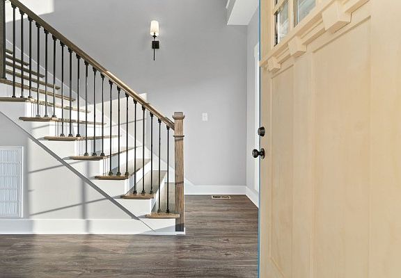 Additional highlights include plank laminate flooring throughout the main level, designer lighting, wood staircases, and finish selections you won’t find in other builds. Enjoy morning coffee on the covered front porch or unwind on the covered back deck, which overlooks a peaceful, wooded lot—a rare bonus in new construction.
