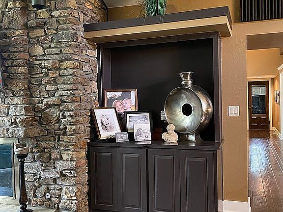 This home is 2 story with a basement. First level is kitchen, living, half bath and master Jack and Jill style bathroom with private toilets and vanities. There are 2 bedrooms and 2 full baths downstairs, with a living room, cedar closet and workout room and mini kitchen. There is a half bath in exercise room. Remodeled with all Viking kitchen appliances, screened in porch off kitchen with grill and sink. This home has 2 fireplaces, upstairs is gas and downstairs is wood burning. Fenced in backyard with doggie door. Circle drive with covered entrance to the front door. Walking distance to the golf course. The neighborhood is quiet and the culdesac is also very private. Vaulted ceilings upstairs and stone columns throughout giving this home a very timeless look. Call to schedule a viewing.