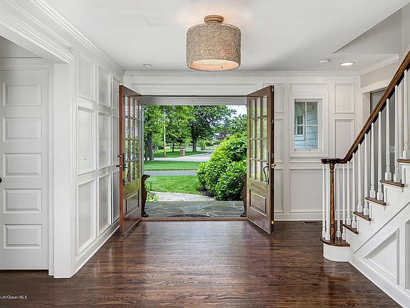Spectacularly situated on one of Rumson's beautiful inlets off the Shrewsbury River, ''Hidden Cove'' provides breathtaking water views and stunning sunsets. This boater's paradise, comes with a dock providing ample space for a large boat, kayaks and jet skis. The Seashore Colonial offers 4/5 bedrooms, an open floor plan, with water views from almost every room. Recently renovated, it features a beautiful kitchen with custom built cabinets, SS appliances, and bead board ceilings throughout. Beautiful decorative moldings and multiple French doors lead to a raised bluestone patio with sweeping water views, perfect for entertaining. Situated on 1.5 level acres of total privacy, and a natural setting, makes this a unique home. High Speed Ferry to NYC, excellent schools, and pristine NJ beaches are all close by. Come experience this beautiful home, where traditional design meets luxurious living.