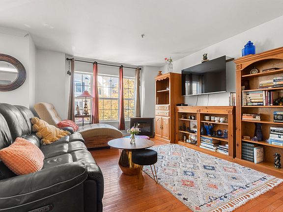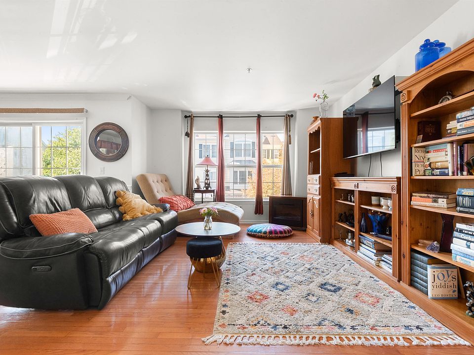 Feast your eyes on this charming, extremely well maintained and expansive 3-level, 2 bedroom/2.5 bath townhouse thoughtfully laid out for ease of daily living and superb entertaining. Upon entering there is a large double coat closet leading to a large open living room and dedicated dining area featuring a wall of windows which bathe the home in light and make the hardwood floors gleam. The icing on the cake is your private balcony sitting area to enjoy morning coffee or a post-work glass of wine. The kitchen features solid wood cabinetry, quartz countertops, updated stainless steel appliances, plenty of counter space and two pantries outside of the nearby powder room. Downstairs you will find a newly carpeted, large, open, versatile space which was formerly used as an additional bedroom but currently has multi-purposes (home office, additional entertaining and exercise space and a guest bedroom for visitors). It offers easy access to the garage and on the sunny, windowed side there is a walkout where you can enjoy some fresh air or escape to read a book in the manicured green space and landscaped community gardens. The primary king-sized bedroom suite features a soaring cathedral ceiling, walk-in closet with attic access for even more storage, an enormous en-suite bath with jacuzzi tub, updated free standing shower and two separate vanities. The second bedroom is spacious and large enough for a queen bed set, a sizable desk for work or study and provides a deep closet. Right outside is a linen closet across the hall from a beautiful, brand new classic black and white bath. Adjacent is the separate laundry area with newer full-size side by side machines and lots of shelving. This perfect package includes a large attached garage parking spot with heavy-duty hanging storage shelves and an outdoor driveway spot, two additional parkings tags for guests to utilize inside the community, updated furnace/HVAC/hot water heater, two-zone heating/cooling, glistening hardwood floor on the second and third levels and under a one minute stroll to access the in-ground community pool or the gorgeous Bay boardwalk sunsets. Boatworks is conveniently located near the 8th Street Light Rail station and nearby NJ Transit buses providing easy access to NYC, Hoboken, and Jersey City. Less than a minute from the Bayonne Bridge. Come take a look and discover the community and convenience at Boatworks!