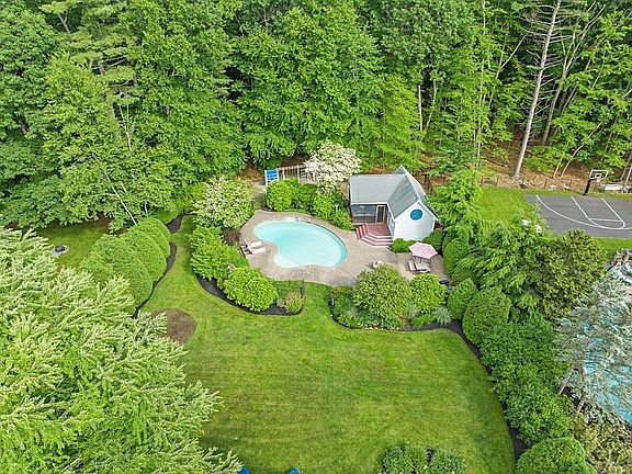 This summer invite family & friends to a barbeque in this memorable backyard! This beautiful home has a heated in-ground pool, a pool house with kitchenette & bath, a hot tub, deck & patio, and there is plenty of grass for wiffle ball or any favorite outdoor activity. Love to entertain? this home offers a great floor plan for enhancing family togetherness. Kitchen & family room is one big open area, dining room & living room are open too! There is a 1st floor office, 1st floor laundry room, a family room plus den on 1st floor. The spacious primary bedroom features an updated marble en-suite bath. The 4th bedroom with walk in closet has a bonus room with a fun oversized circular window overlooking the backyard - perfect for play space, office, etc. Hardwood throughout, updated windows, a mudroom with built-in cubbies & closets at garage entrance, 3 car garage, gas fireplace in the den. Pretty, large neighborhood of 4 interconnecting cul-de-sac streets perfect for getting out & about!