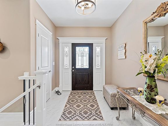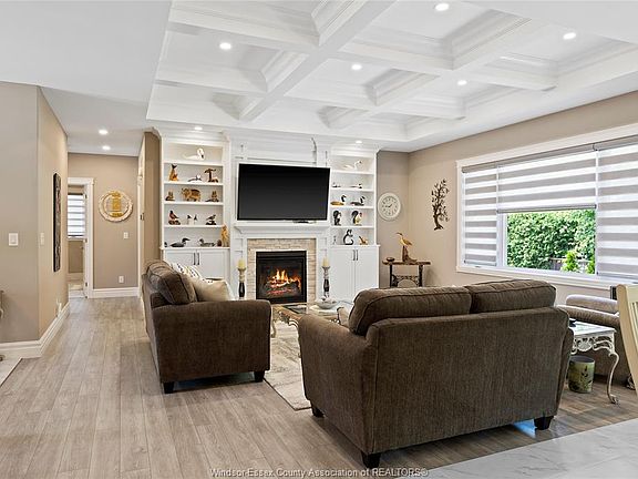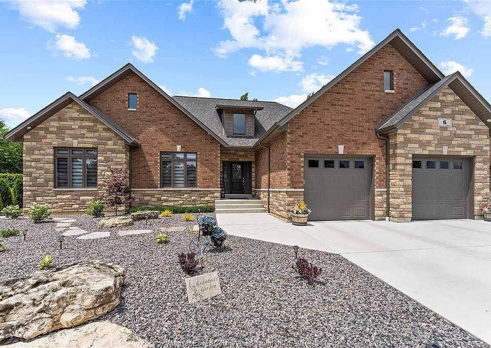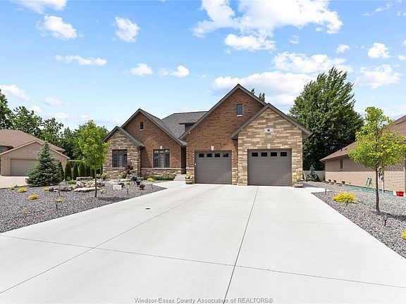 Elegance & Quality stand out in this 5 bedroom, 3 bathroom, NOAH HOMES built ranch w/full brick & stone exterior. Open concept w/spacious foyer, 9’ ceilings throughout and architectural ceiling in living room w/Napolean gas fireplace & built-in shelving units w/lights. Kitchen w/working centre island, breakfast bar, walk-in lighted pantry & stainless steel appliances included. Generous Primary suite w/step-up ceiling, ensuite w/double vanity, big ceramic/glass shower w/seat & large walk-in closet. 4 more big bedrooms & walk-in closet w/one. Open concept in finished basement as well, for entertaining. Family room w/fireplace, games room for pool table & finished wet bar. LVP & ceramic flooring throughout. Almost 4000 sq. ft. of finished living space w/HRV & oversized C/A. Spacious finished 2 car garage, extra wide cement driveway, cement walks to covered 10’ x 21’ rear deck. Professionally landscaped yard with drip irrigation. Quiet cul-de-sac in Cottam & only minutes to Essex, Kingsville & Windsor. Great schools, parks w/walking paths, sports, playground equipment & splash pad. Well below reproduction cost, better than new, why wait as this can be yours much sooner than building, unless someone else gets before you.